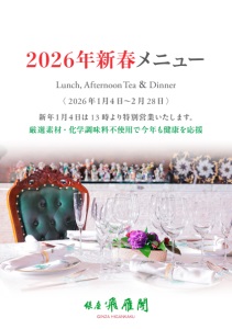 平素より格別のご贔屓、お引き立てを賜りまして 銀座 飛雁閣スタッフ一同、心より御礼を申し上げます。 2026年も、皆様のより一層のご健康とご多幸を祈念し 変わらぬご愛顧、ご支援をお願い申し上げます。 寿